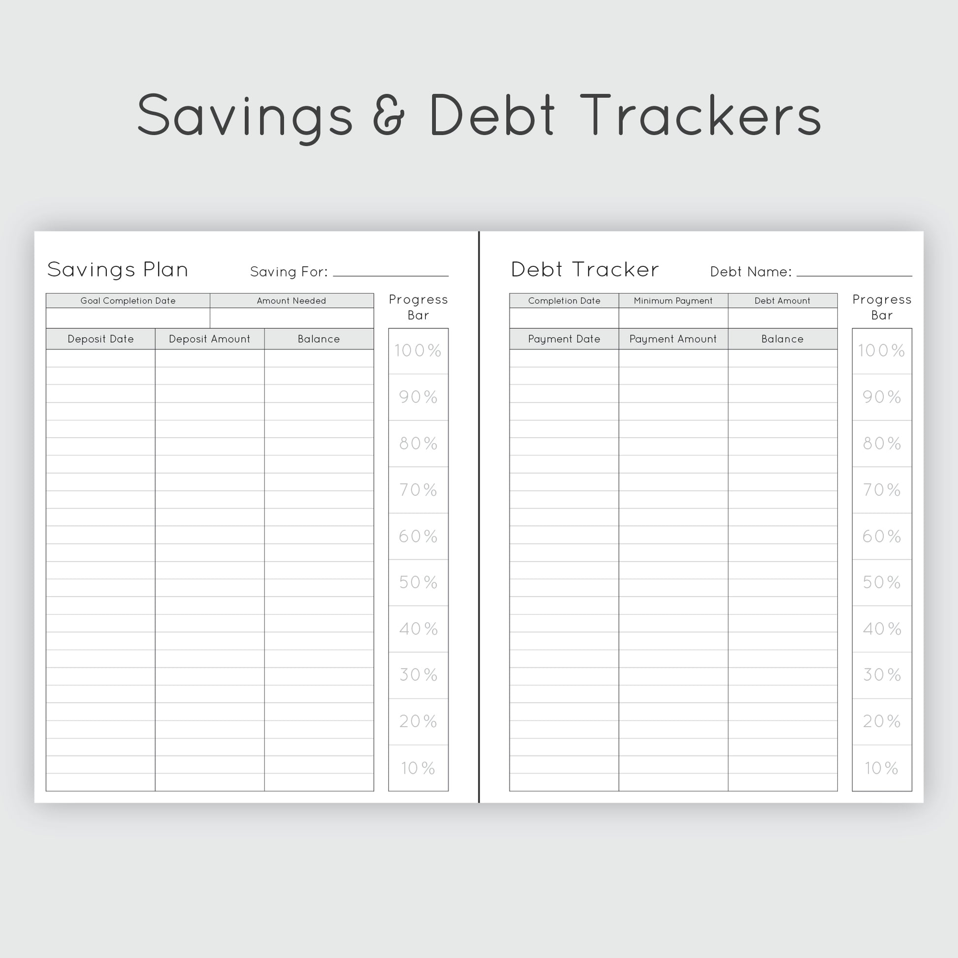 Our budget journal includes monthly budgeting outlooks, expense trackers, travel budgets, gift budgeting, savings and debt trackers. Every month contains a two page monthly spread and numerous expense trackers. Each budget journal includes a matching 2 sided folder in the back and thick laminated covers, with personalization options.