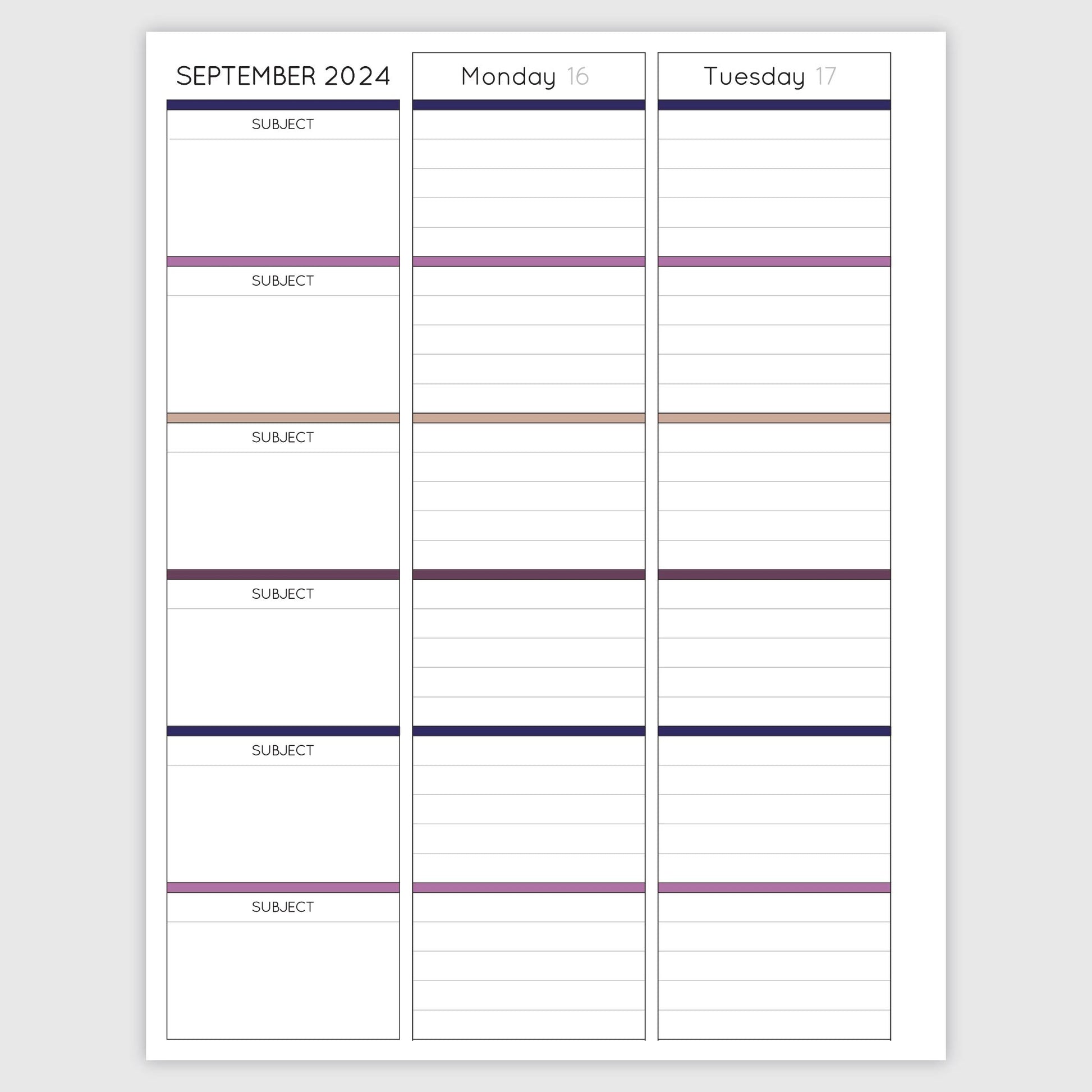 Our Teacher Planner is 7x9 inches in size, 12 months in length and can be purchased with any start month. We include all of the essential inserts to create a successful school year, including planning pages, student checklists, class schedules and more.