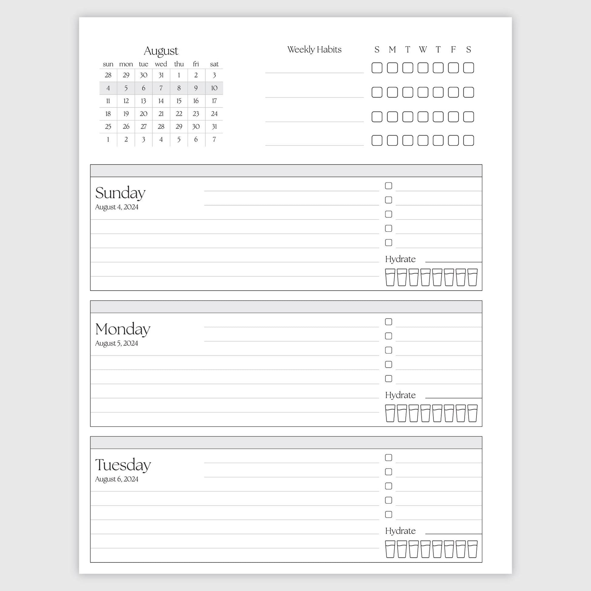 Our Works Horizontal Weekly planner is 12 months in length and can be purchased with any start month. It features a horizontal layout.