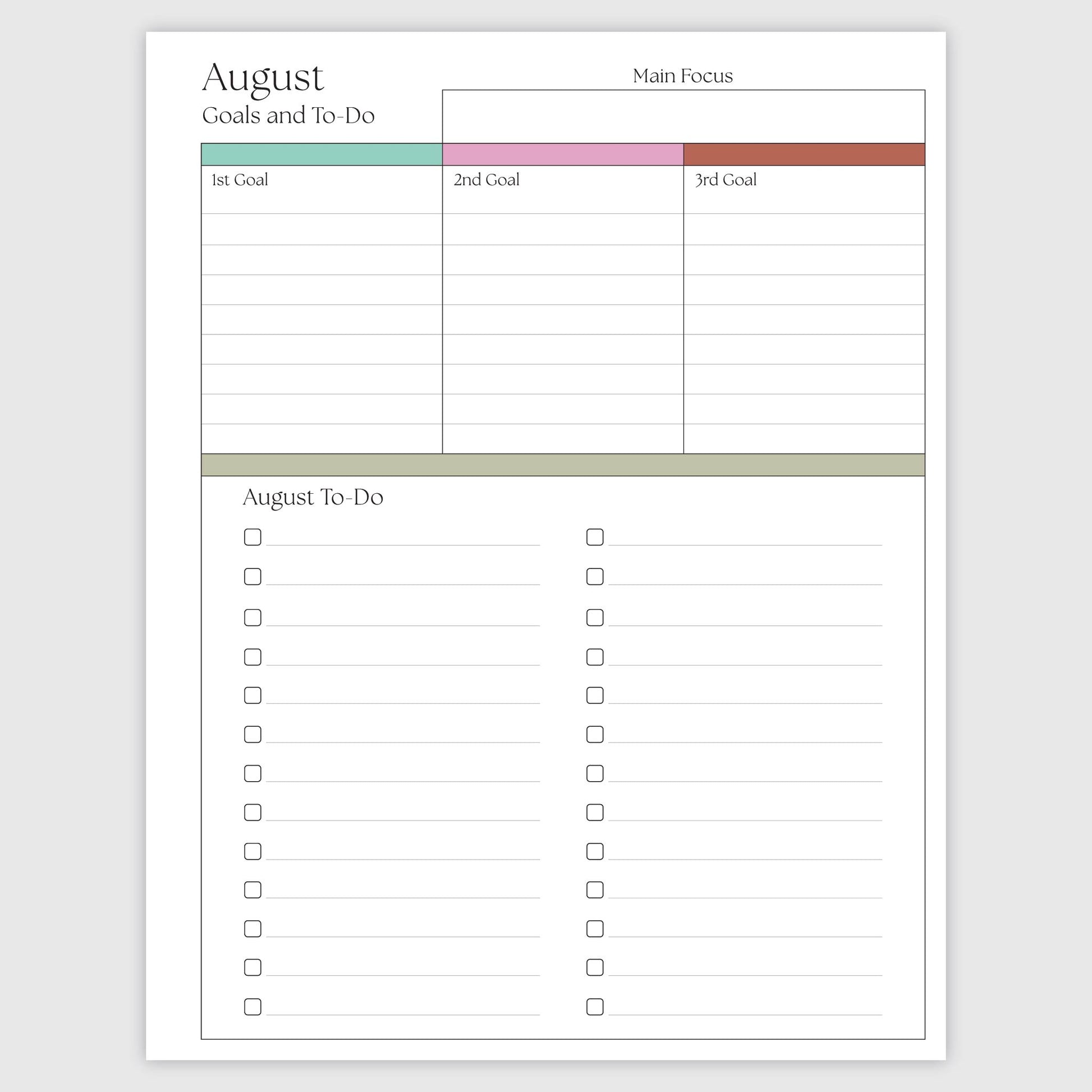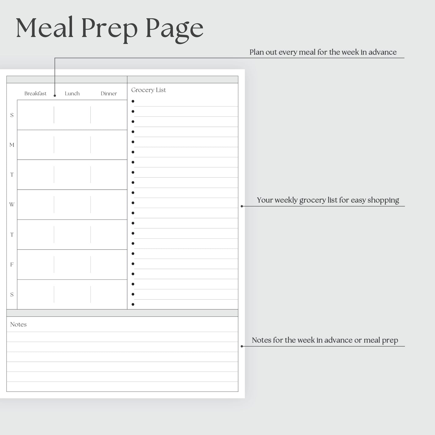 Our Works planner also includes a main holiday list in the front, holidays listed on each individual day, a vision board, a goal and to-do list for every month, two page monthly spread for every month, budgeting page for every month, meal prep/grocery list for every week, habit tracking, hydration tracking, future 12 month tracking, password tracker, contact tracker and numerous additional note pages.